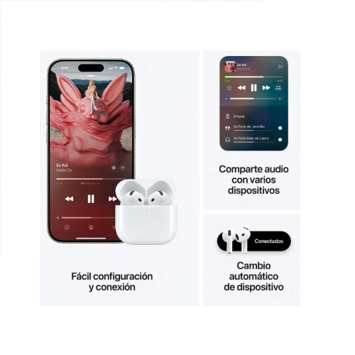 Reconstruidos para mayor comodidad: los Audifonos 4ta generacion han sido rediseñados para una comodidad excepcional durante todo el día y una mayor estabilidad. Con un contorno refinado, tallo más corto y controles de presión rápida para música o llamadas.
